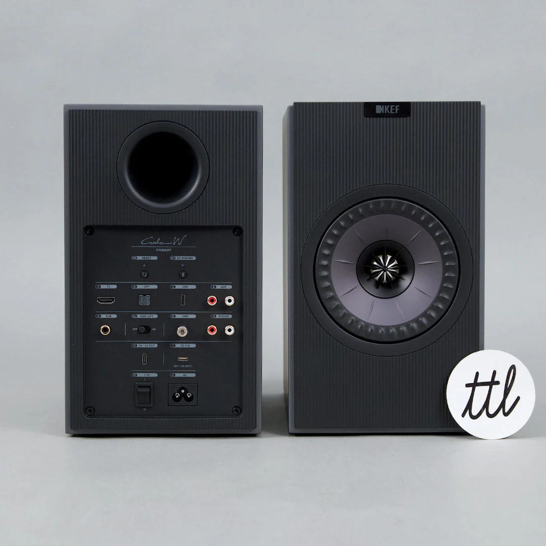 "The Coda W might have been designed with turntable users in mind. This powerful 200W system boast dual amplifiers, perfect for 2 channel audio. The inclusion of a RCA input with phono preamp allows the Codas to work with any turntable on the market. When you're not listening to vinyl, use the wide array of digital inputs including Bluetooth, HDMI Arc and USB-C. The (5) colorways are understated and timeless, we especially like the retro grey / Braun-like coloway. Ideally sized (a bit larger than mid-sized), this is great price point for a higher-end active speakers." - TTL