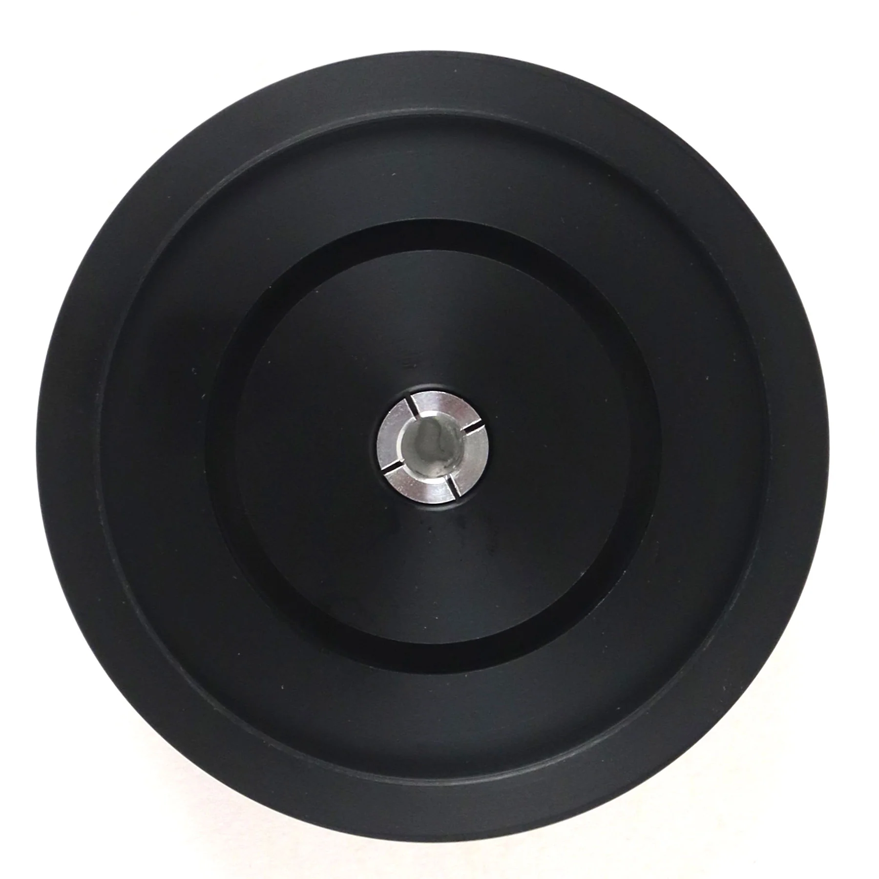 - black Delrin record clamp with anodized aluminum knob